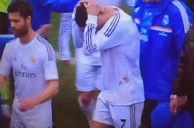 بالفيديو.. رونالدو يتجنب إعتداء جماهير اتلتيكو مدريد بوضع يديه على رأسه