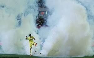 بالفيديو.. قنبلة غاز مسيل للدموع تتسبب في إيقاف مباراة في الدوري الإسباني
