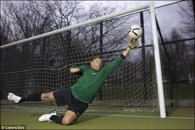 حارس مرمى بيد واحدة يصد 3 ركلات جزاء!!