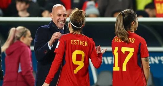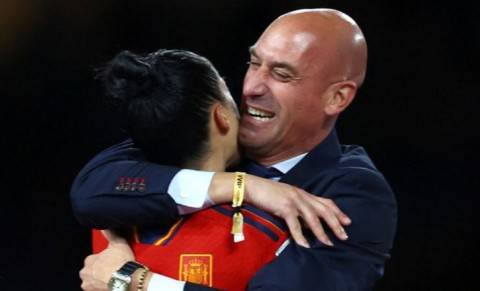 قبلة بالفم .. رئيس الاتحاد الإسباني يحتفل بفوز إسبانيا للسيّدات بتقبيله لاعبة بالقوّة ويُدافع عن قبلته على أنها بالتراضي لتنفي اللاعبة رضاها.. صاحب القبلة رفض الاستقالة و الفيفا يُوقفه بانتظار الحُكم النهائي