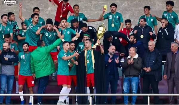 على طريقة ميسي.. لاعبو الوحدات يحتفلون بكأس دوري الشباب