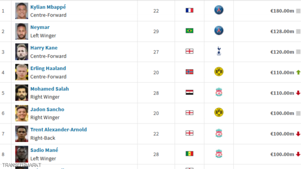 مفاجآت في قائمة "أغلى اللاعبين" بدوري الأبطال
