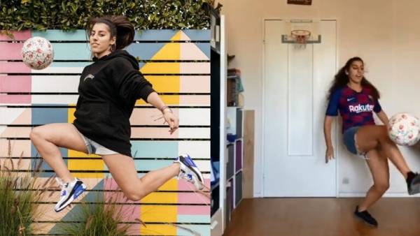 شاهد.. الجزائرية زيموتشي تنضم إلى تحدي "فريستايل فوتبول" بقميص برشلونة
