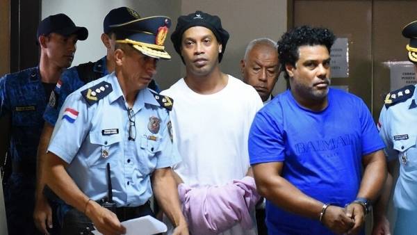 الابتسامة لا تفارقه.. أول صورة لرونالدينيو من داخل السجن في باراغواي