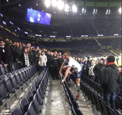 فيديو.. شجار حاد بين لاعب توتنهام وأحد المشجعين في المدرجات