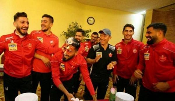 احتفال لاعبي 'برسبوليس' بعيد ميلاد زميلهم العراقي بشار رسن