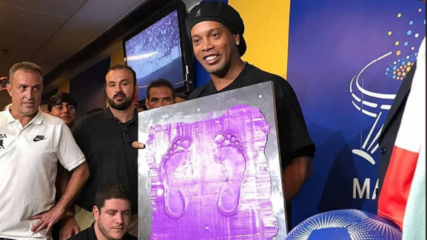 البرازيلي "رونالدينيو" يجاور المشاهير ببصمة قدميه