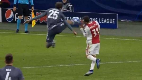 شاهد.. طرد نجم البايرن بعد تدخل عنيف ضد لاعب أياكس
