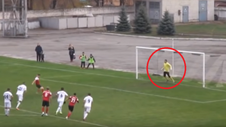 شاهد.. حارس مرمى يتصدى لركلة جزاء برأسه بطريقة طريفة