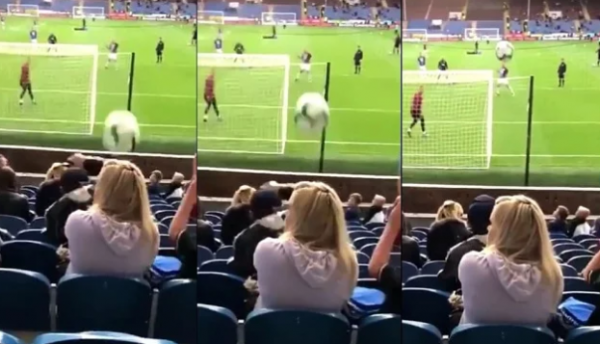 فيديو.. تسديدة تصيب رأس إحدى المشجعات