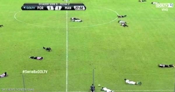بالفيديو.. انبطاح جماعي للاعبين بعد هجوم جوي غريب