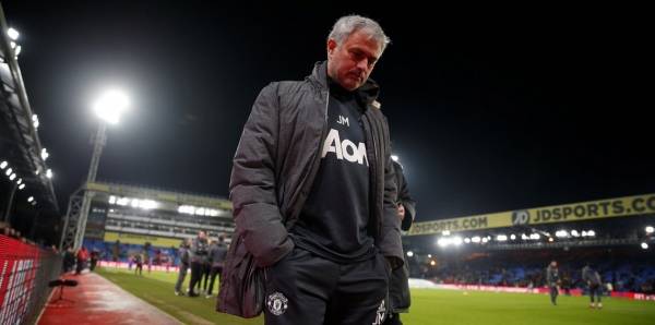 جوزيه مورينيو يتعثر ويسقط أرضًا خلال مباراة مانشستر يونايتد وكريستال بالاس (فيديو)