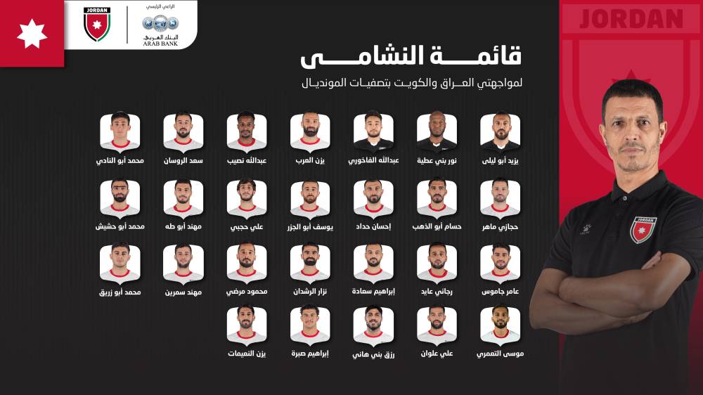 إعلان قائمة النشامى لمواجهتي العراق والكويت بتصفيات كأس العالم