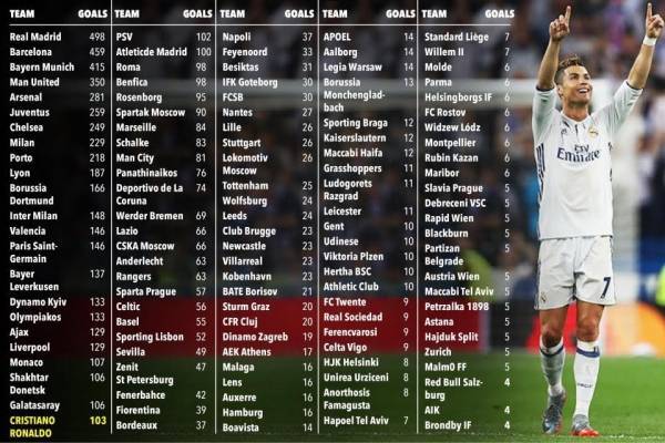 رونالدو سجل أهدافًا أكثر مما سجله 113 فريقًا شاركوا في أبطال أوروبا
