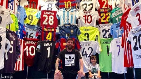 ميسي يستعرض قمصان خصومه.. وبينهم لاعب عربي