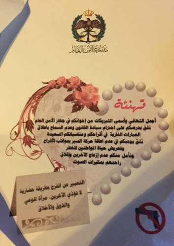 ورافق العميد جرادات في حملته التفقدية كبار صباط الامن العام وذلك للاطلاع على الخطة الامنية التي تمت المباشرة بها على ارض الواقع في مشهد امني يثلج الصدور انعكست اثاره على جموع المواطنين الذين ثمنوا تواجد عميدهم الامني بينهم في مشهد أمني مهيب يبعث على الفخر وكثير من الطمأنينة بأن الاردن بكافة محافظته ومدنه واحة حقيقية للأمن والأمان.