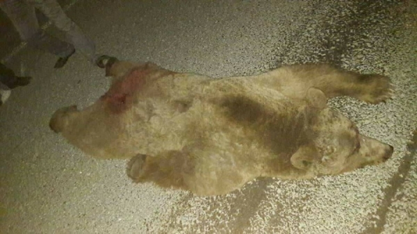 ونشر الناشطون صورا لحادث السير الذي قضى على الدب المذكور على طريق جرش عمان حسب وصفهم .