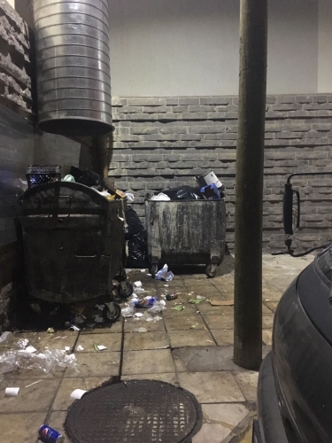 "القوارض ،والقطط الملوثة أصبحنا نراها بكثرة" ،هذا ما أضافه ،مشيرا أنه تم التحدث إلى إدارة المول بهذا الشأن،حيث تعهدوا بالعمل على تنظيف النفايات كل (3) أيام،إلا أن الأمر ليس بحاجة لانتظار أيام،فالقاذورات تملؤ المكان ،ومن غير المعقول السكوت عن هذا الوضع.