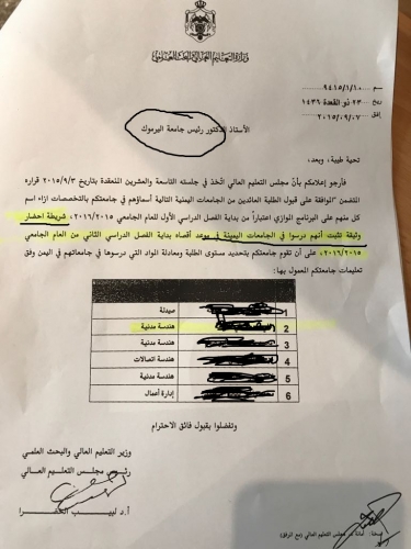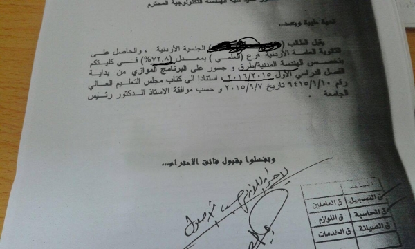 وخلال تقصينا كيف تم "تزريق" وتلزيم الفرص لهذا الطالب فقد اكدت بعض المصادر التي رفضت الكشف عن هويتها خوفا من ان يلحقها اذى ، مبررين ان الطالب هو من الطلبة الدارسين في الجامعات اليمنية ممن عادوا بعد الاحداث التي لا زالت تعصف باليمن وجامعاتها.. باعتبار ان الجامعات الاردنية هي ملاذهم ومكانهم لاستكمال مشوارهم الذي انقطع بسبب الحرب لنكتشف "والله اعلم" بأن هذا الطالب لم يكن في الجامعات اليمنية ولم يدرس هناك ولم يغادر الاردن وفقا لوثائق رسمية تؤكد ذلك ونقصد هنا: جوازات السفر واختام المغادرة والقدوم ، بالاضافة الى وثائق رسمية سنسلمها للجهات المعنية في حال طلبها ، لأن الطالب المعني كان قد سجل رسميا وفقا للوثائق التي بحوزتنا بتخصص الفيزياء في الكلية ذاتها، وبعد ان اختلطت الاوراق وتشابكت الاسماء وتبدلت الجامعات من البوليتكنك الى اليمن ثم اليرموك فالبوليتكنك مرة اخرى ، ولا نعلم كيف تم كل هذا .. وبهذه السرعة .. وكيف تحول الطالب ذو المعدل المتواضع والمفصول لمدة فصلين دراسيين ، الى مهندس قيد التنفيذ في جامعة البلقاء .
