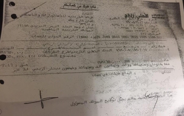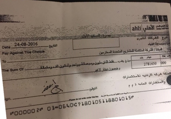 ابو خضر من جانبه كشف عن الشيكات التي قام بدفعها الى الشركة ليبقى السؤال اين ذهب مبلغ 6 مليون دينار.
