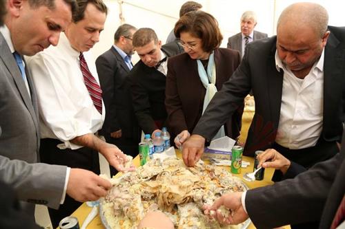في الوقت الذي يرفع فيه النائب حليل عطية لواء محاربة الامبريالية ومحاربة الصهيوامريكية ورواج صورته فيما هو يحرق علم دولة الكيان الصهيوني تحت قبة البرلمان الاردني في دورته قبل الماضية في سابقة تاريخية وكونية .. فقد حضر عطية مائدة منسف اردني بمعية السفير الامريكي جونز استيورد نهار اليوم ، ولم تكشف المصادر فيما اذا قام عطية "بتفتيت" اللحم امام السفير استيورد !!