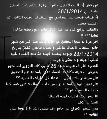 وصلتنا رسالة من ذوي الموقوف حاتم الرازم جاء فيها