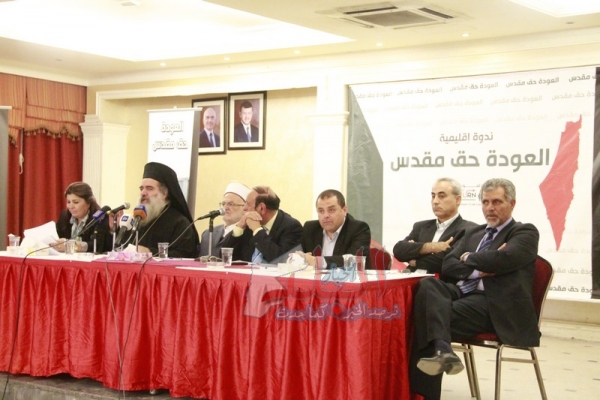 واطلقت الحملة في ندوة اقيمت في مجمع النقابات المهنية تحت عنوان "العودة حق مقدس" تحدث فيها خطيب المسجد الاقصى عكرمة صبري ورئيس اساقفة الروم الارثوذكس الاب عطالله حنا وممثل الحملة سالم صويص.