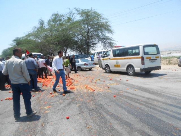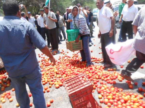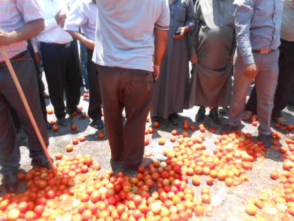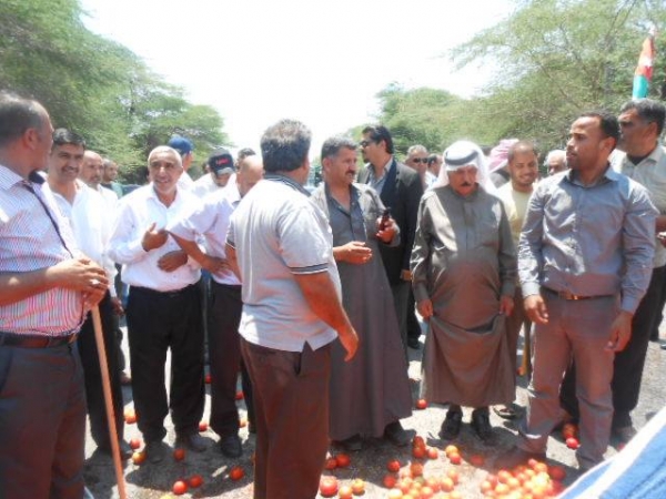 نفذ مزارعون في منطقة دير علا في الاغوار اعتصاما تخلله القاء اطنان البندورة غلى الاسفلت.