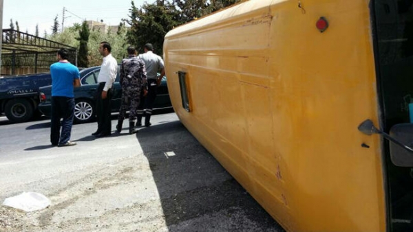 نجا نحو 20 طالبا في المرحلة الأساسية بإحدى المدارس الخاصة في عمان، من التعرض لإصابات بعد أن انقلبت حافلة المدرسة التي تقلهم على جانب الطريق ظهر اليوم الخميس، في منطقة "نزول الإرسال" بصويلح.