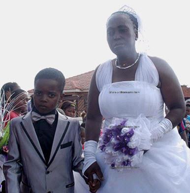 تزوج طفل جنوب إفريقي بعمر ثماني سنوات فقط، من سيدة ستينية، وهي زوجة وأم لخمسة أبناء وذلك تنفيذاً لوصية أجداده، وفي حفل ضم الأسرتين وحوالي مائة مدعو، تبادل الطفل سانيل ماسيليلا من مدينة "تسواني” وخطيبته هلين شابانجو، 61 عاماً، خواتم الخطبة، وارتدى ماسيليلا بدلة فضية اللون، بينما ارتدت العروس فستاناً أبيض.