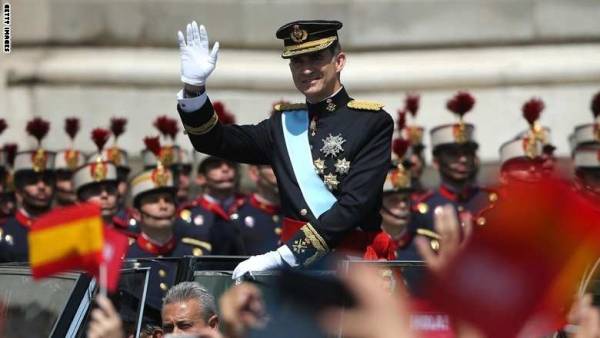 وبعد إلقاء كلمته الأولى كملك البلاد وترؤسه عرضا عسكريا أمام مدخل مجلس النواب عبر فيليبي مع زوجته ليتيزيا بالسيارة المدينة التي زينت على شرفهما.