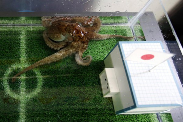 أخطبوط يتنبأ بفوز الفرق في اليابان، حيث توقع فوز اليابان في المباراة الأولى لمنتخبهم ضمن منافسات كأس العالم في أمام ساحل العاج، وهو موجود داخل حوض الأسماك الكبير في طوكيو.