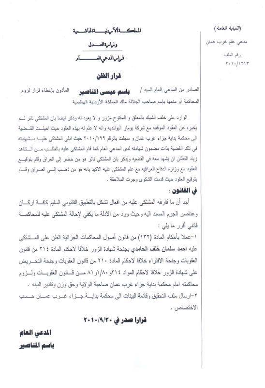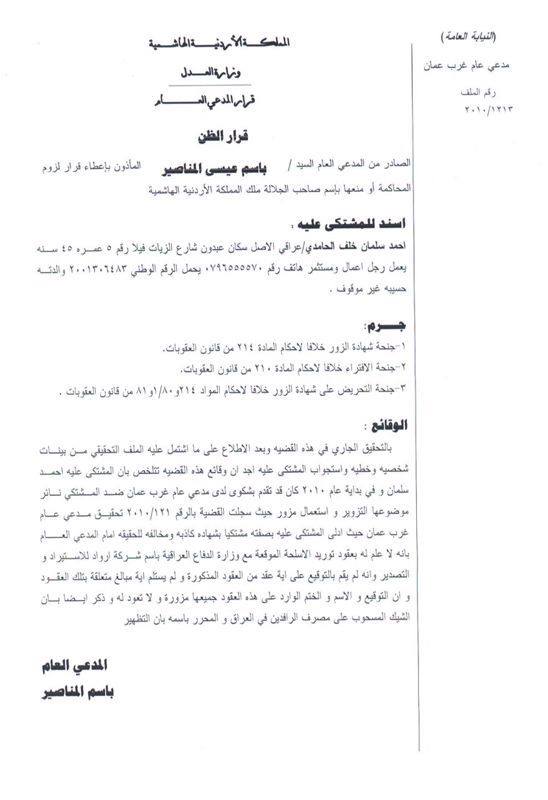 الدخل الاردنية وبالرغم من إدعاءه دوما بأنه لم يوقع العقود كونها مزورة ولا علم