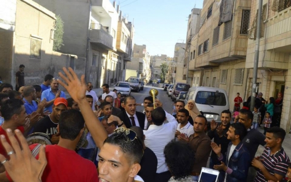 العريس عامر كان في قمة السعاده وهو يرى الصحبه والخلان يجتمعون في حلقات الدبكه وعلى راسهم عمدة المدينه المهندس عماد المومني وكبار الشخصيات الرسميه والشعبيه بالاضافه الى اصدقاء شقيق العريس جهاد البطاينه