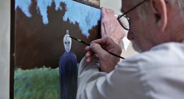 من الفضاء (الفضائيين)، وأنهم يعاودون زيارته في الآونة الأخيرة، وبدأ برسم لوحات تعبر عن تجربته معهم على حد قوله.