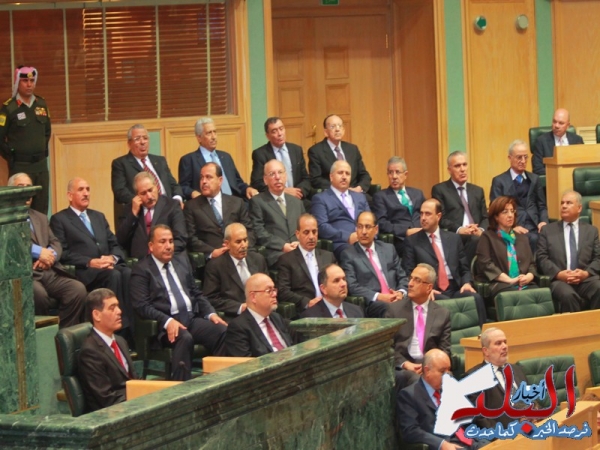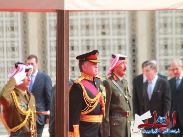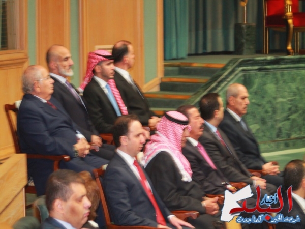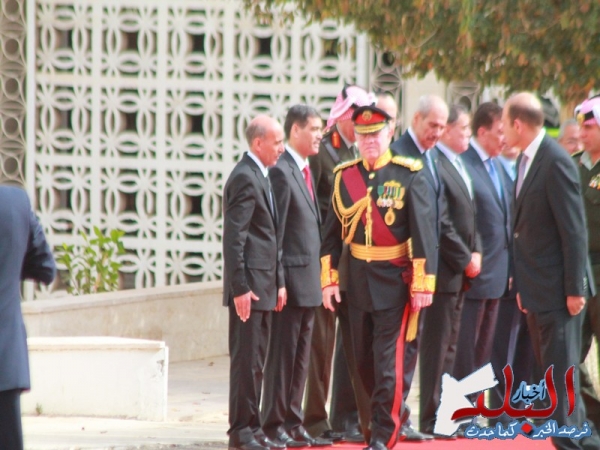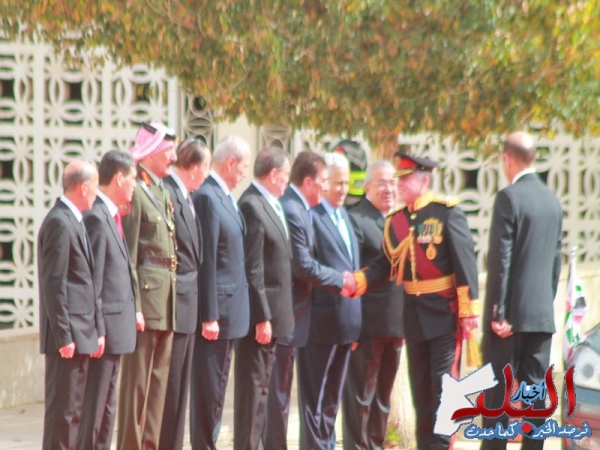 وتفضل جلالته عقب إلقاء خطبة العرش السامي بالسلام على أعضاء مجلسي الأعيان والنواب وكبار المسؤولين في الدولة