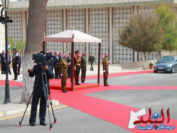 وكانت موسيقات القوات المسلحة عزفت السلام الملكي لدى وصول جلالة الملك عبدالله الثاني إلى باحة مجلس الأمة، وأطلقت المدفعية إحدى وعشرين طلقة تحية لجلالته، ثم استعرض جلالته حرس الشرف الذي اصطف لتحيته.