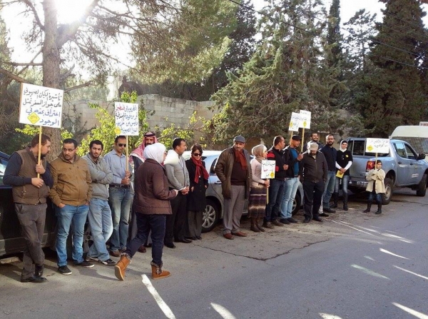 نفذ أعضاء حملة اِستحِ نهار اليوم السبت اعتصاما أمام وزارة السياحة والآثار في العاصمة عمان لرفض الترويج السياحي والديني لزيارة فلسطين المحتلة بموافقة صهيونية إما بالفيزا الصهيونية أو بما يسمى تصريح السلطة الفلسطينية الذي لا يصدر إلا بموافقة الصهاينة.