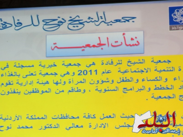 قامت جمعية نوح القضاة يوم امس السبت بعقد مؤتمر صحفي في قاعات مطعم اريج تحدثت من خلاله عن اهم انجازات الجمعية خلال عام 2014.