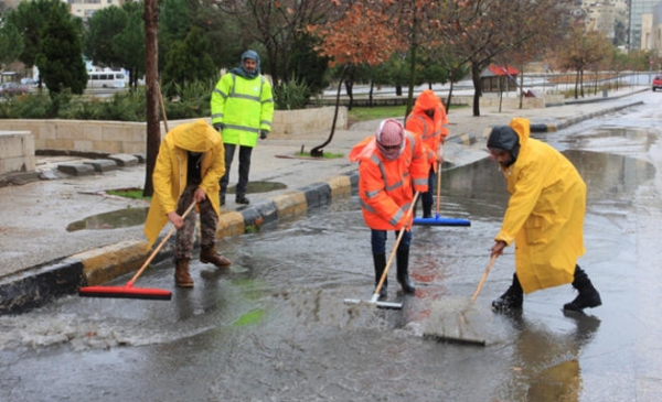 وبين انه تجري تعزيز للجهود وفق مستجدات الحالة الجوية حيث تواصل الآليات عملها لمنع تراكم الثلوج وتصريف مياه الأمطار لتخفيف الآثار السلبية لحالة الانجماد المتوقعة.