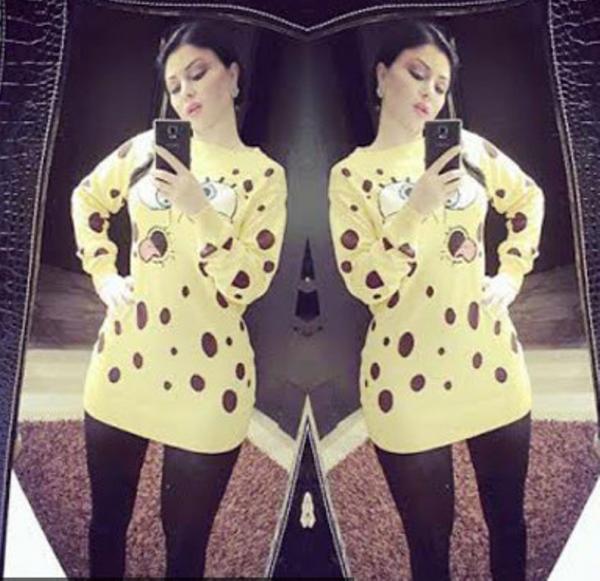 نشرت الفنانة هيفا وهبي عبر صفحتها الخاصة على احد مواقع التواصل الإجتماعي، صوراً جديدة لها وهي ترتدي ثياباً منزلية زيّنت برسوم "سبونج بوب" الكرتونية، وإعتمدت تسريحة الضفيرة لشعرها ما جعل إطلالتها تبدو كالأطفال.