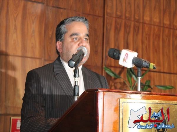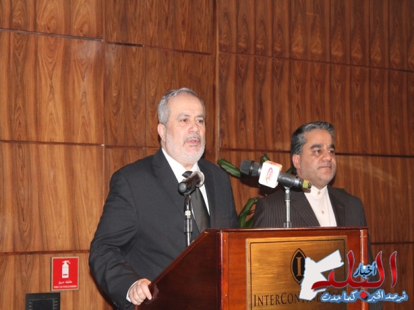 واثناء الاحتفال القى سعادة السفير الإيراني "بور" كلمة ترحيبية بالضيوف تطرق بها الى الدور الإيراني في دعم القضايا الإسلامية والاقليمية مؤكدا على أهمية التعاون مع الجميع في سبيل خدمة قضايا الامة الإسلامية وفي مقدمتها القضية الفلسطينية معرجا" الى ثوابت الدولة الإيرانية السياسية والدينية .
