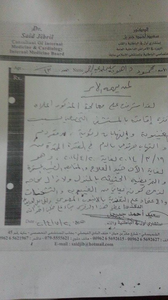 اما جمال يعاني من شعر بالعامود الفقري وكسر من الفخذ حتى الحوض حيث تم اجراء عملية تركيب صفائح معدنية