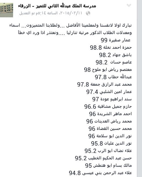 تألق وتميز تقدم به الطالب عمار رمضان صفيرة على زملائه عندما اجتاز امتحانات الثانوية العامة بعلامة شبه كاملة وصلت الى ٩٩ ٪ في الفرع العلمي