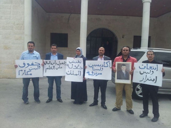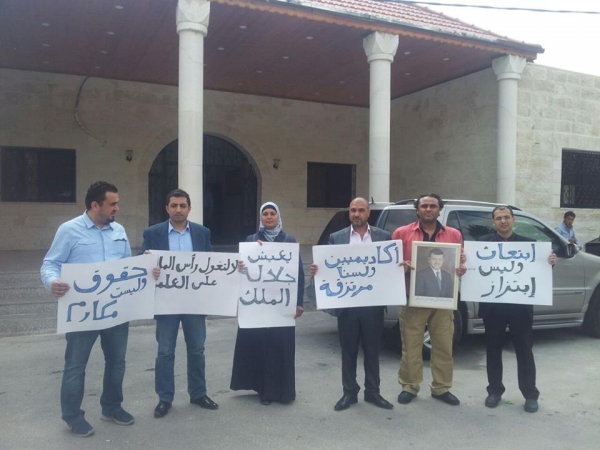جدد اعضاء الهيئة التدريسية من حملة الدكتوراة والمبتعثين في جامعة جرش اليوم اعتصامهم للمرة الثانية على التوالي للمطالبة بحقوقهم التي ضاعت في ادراج الوعود والتسويفات من قبل رئيس الجامعة الدكتور عبد الرزاق بني هاني