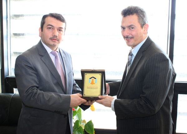 استقبل رئيس جامعة عمان العربية الأستاذ الدكتور عمر الجراح السيد محمد نوري أيدن رئيس مجلس الإدارة في شركة البرج للتربية والتعليم والوفد المرافق.