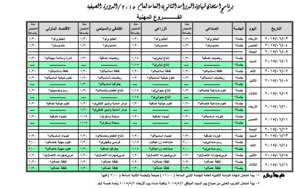 أعلنت وزارة التربية والتعليم، الخميس، عن البرنامج الأولي لامتحان شهادة الدراسة الثانوية العامة/ الدورة الصيفية للفروع الاكاديمية والمهنية للعام 2015.