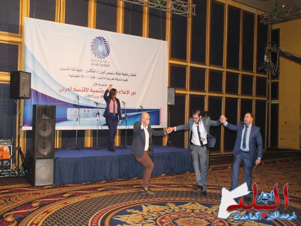 وكان عدد من الاعلاميين الاردنيين قد انسحبوا ايضا من هذا الحفل الذي اساء الى دولة رئيس الوزراء (راعي الحفل) والذي كان موفقا ومحظوظا في عدم الحضور لهذا الاحتفال الرديء في كل شي .. متسائلين عن علاقة (الرقص) و(الدبكة) والغناء بالاقتصاد العربي المهزوز))
