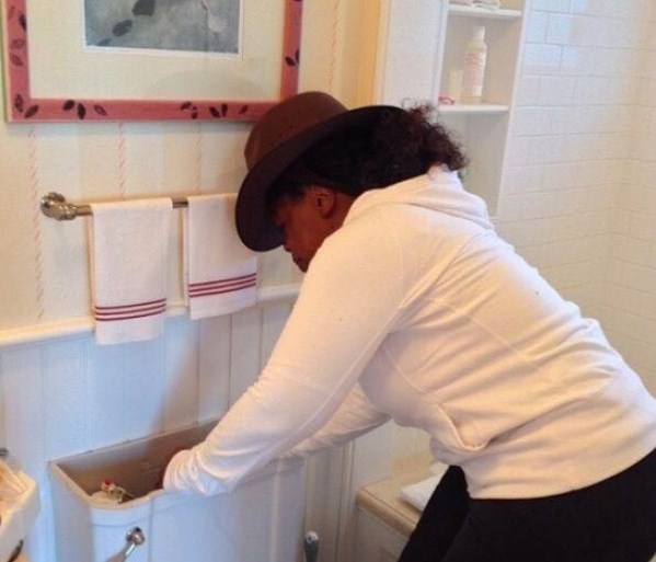 نشرت الإعلامية الشهيرة أوبرا وينفري صورة لها وهي تقوم بإصلاح المرحاض في بيتها .