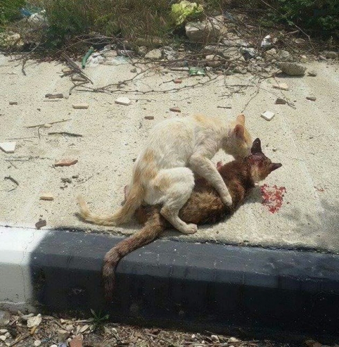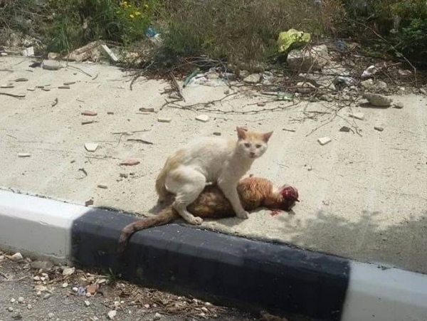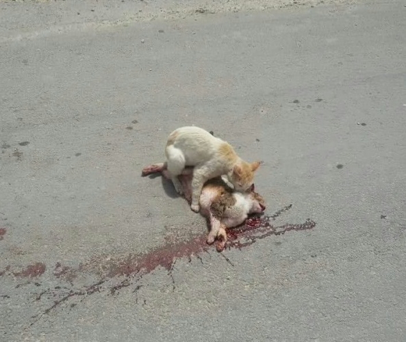 في لقطات لافتة لا تبتعد عن الوجع والمرارة، رصدت كاميرا احد نشطاء مواقع التواصل الاجتماعي على الـ "فيس بوك" مشاهد متتالية لقطة لقيت حتفها دهسا باحد شوارع مدينة طول كرم في فلسطين، والتي تم تداولها عبر رواد مواقع التواصل الاجتماعي قاطبة على شبكة "الانترنت" بصورة واسعة لمَ احتوته اللقطات من "انسانية" تجسدت بقطة اخرى والتي قامت بنقل القطة الضحية من على اسفلت الشارع الى الرصيف في مشهد يدفعك للبكاء ليس على القطة "المدهوسة" فحسب..